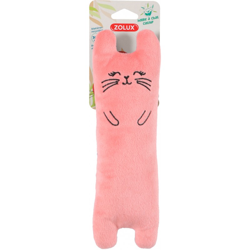 Jouet éco-conçus pour chats ETHI'CAT. Jouet peluche en forme de chat en tissu recyclé. Tissu motif fleur. Fabriqué à partir de 70% minimim de matières recyclées (dont polyester recyclé). Contient de l'herbe à chat pour plus d'attractivité.|