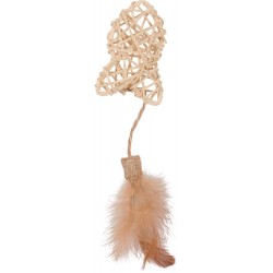 Jouet éco-conçus pour chats ETHI'CAT. Jouet en forme de poisson en rotin. Fabriqué à partir de 100% de matières d'origine naturelle (poisson en rotin, lien en coton et jute, plumes).|