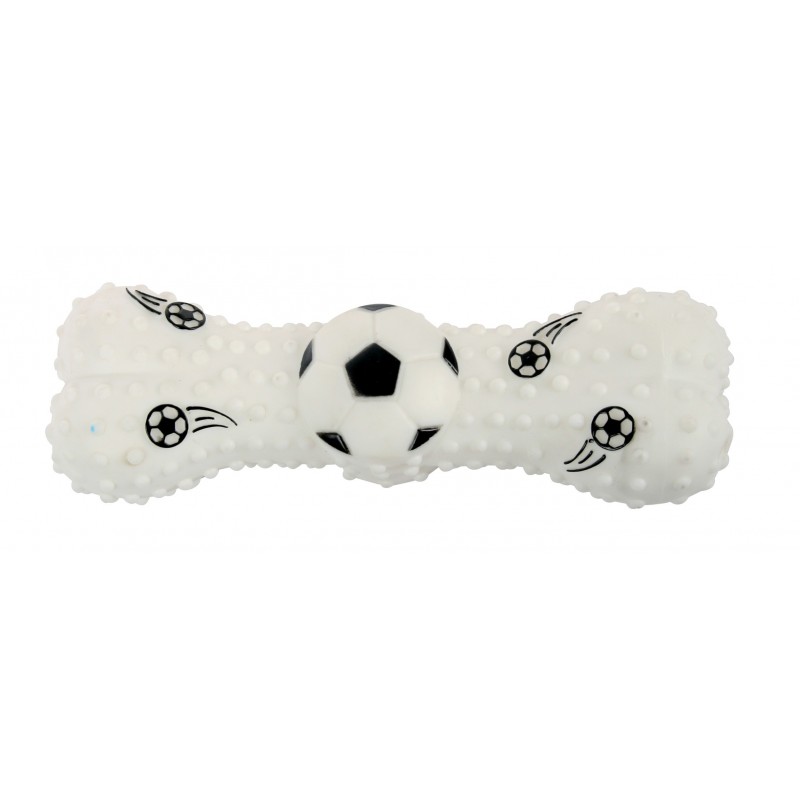Avec ce jouet os version foot, votre chien pourra jouet et s'entraîner comme un pro! Outre son côté ludique, ce jouet doté de picots a l'avantage de masser les gencives de votre compagnon. Ce jouet est en vinyle, facile à entretenir. Il est lavable en machine à 30°.|