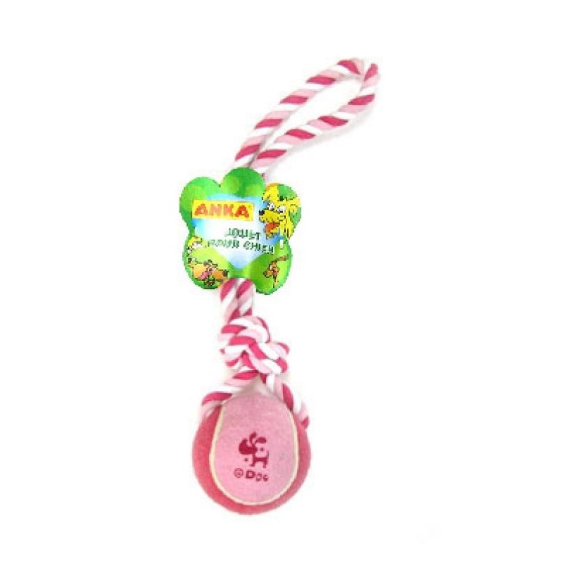 Jouet pour chien en corde coton avec balle tennis.