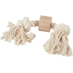 Jouet naturel et durable 'Wild' 2 noeuds Giant pour chien, alliant de la corde (100% coton) à un anneau en bois de hêtre. Sain et ludique: idéal pour conserver une bonne hygiène dentaire tout en s'amusant. Coloris: naturel. Longueur: 45cm.|