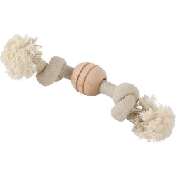 Jouet naturel et durable 'Wild' 2 noeuds Giant pour chien, alliant une corde bi-matière (Coton et Lin) à un anneau en bois de hêtre. Sain et ludique: idéal pour conserver une bonne hygiène dentaire tout en s'amusant. Coloris: naturel. Longueur: 44cm.|