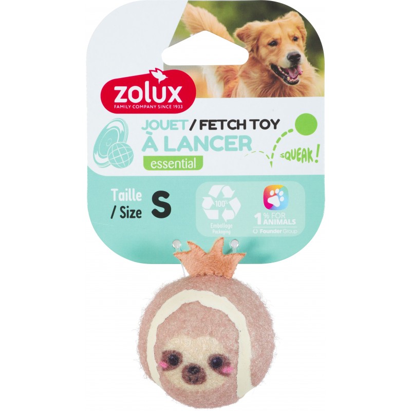 Nouvelle gamme de jouets à lancer pour chiens: - Balle de tennis en forme de tête de paresseux - Squeaker intégré - Tissu 100% polyester recyclé (cheveux). - Idéal pour un moment d'échange privilégié entre l'animal et son maître - Emballage 100% recyclé - Taille S: convient aux chiots et aux petits chiens. - Dimensions: L4,5 x p4,5 x h6 cm. Ce produit est porteur du Label 1% Pour Les Animaux.|