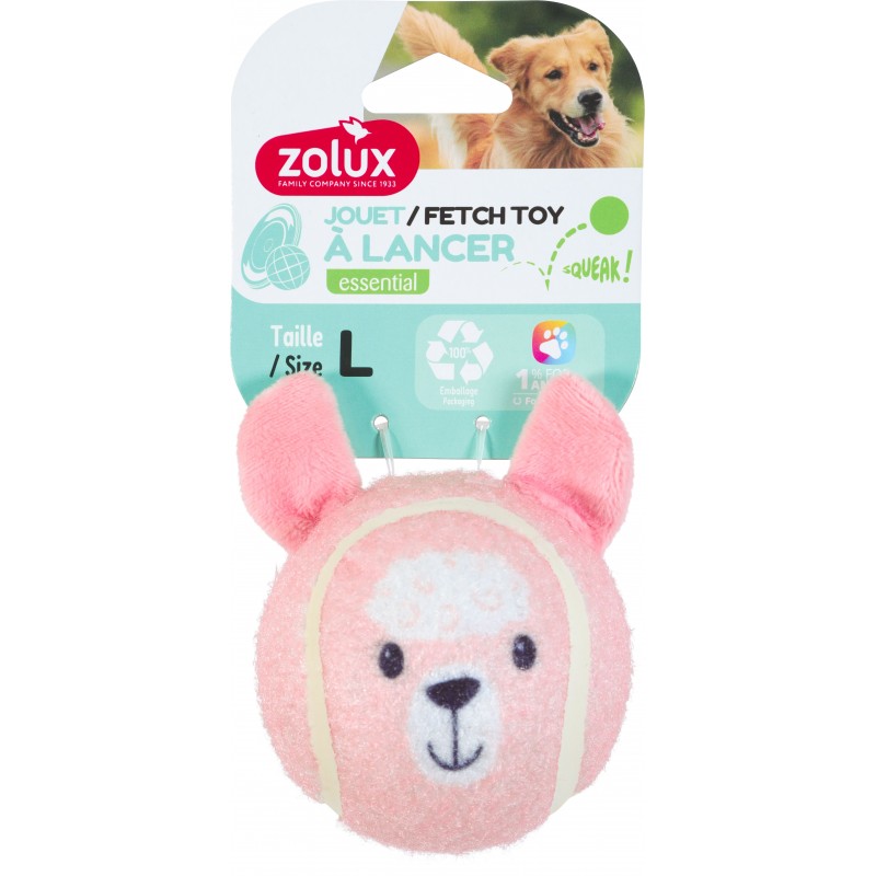 Nouvelle gamme de jouets à lancer pour chiens: - Balle de tennis en forme de tête de lama - Squeaker intégré - Tissu 100% polyester recyclé (oreilles). - Idéal pour un moment d'échange privilégié entre l'animal et son maître - Emballage 100% recyclé - Taille L: convient aux grands chiens - Dimensions: L8 x p7,5 x h10,5 cm. Ce produit est porteur du Label 1% Pour Les Animaux.|