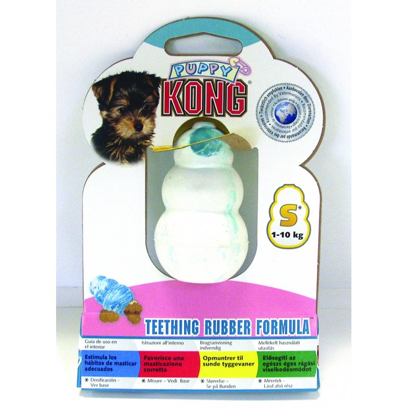 A garnir avec de la pâte KONG Puppy Easy Treat, des Snacks ou Ziggies KONG. Rebondit de maniére imprévisible, idéal pour jouer à rapporter. Formule de caoutchouc souple pour les chiots qui ont besoin de se soulager les gencives. Fabriqué aux États-Unis avec un caoutchouc 100% naturel. Disponible en coloris rose ou bleu et en 4 tailles : XS, S, M, L.