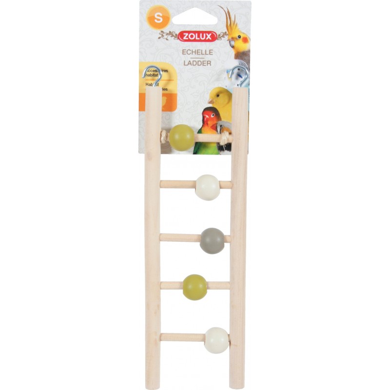 Echelle bois 5 barreaux. Non toxique : peinture conforme aux normes alimentaires (Norme EN71-3). Coloris tendances : vert olive, taupe et beige, en adéquation avec les cages et volières arabesque.
