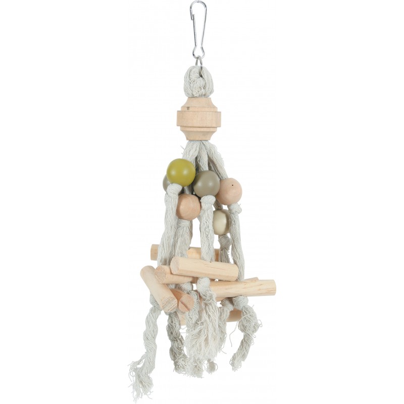 Des heures de distraction pour votre perroquets et vos grandes perruches. Ludiques et colorés avec des formes et des matières (bois, cordes) différentes pour stimuler l'activité mentale de l'oiseau. Non toxique : peinture conforme aux normes alimentaires (Norme EN71-3).