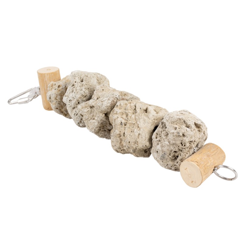 Ce pendentif naturel fait de pierres de lave et de bois de java est un excellent jouet duvoplus pour grimper ou grignoter. Les pierres de lave aident votre oiseau à aiguiser son bec et à raccourcir ses griffes. Il permet à vos oiseaux de rester actifs et vous pouvez facilement le fixer à n'importe quelle volière grâce au crochet.