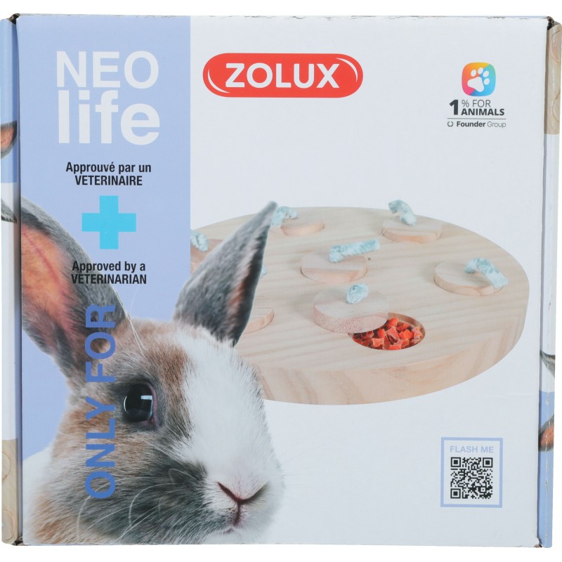 Plateau à friandise pour petits mammifères en bois massif certifié FSC. - Aide à réduire le stress et l'ennui. - Composé de 7 cachettes pour introduire des friandises et occuper votre animal. - Diamètre: 23cm. - Approuvé par un vétérinaire. |