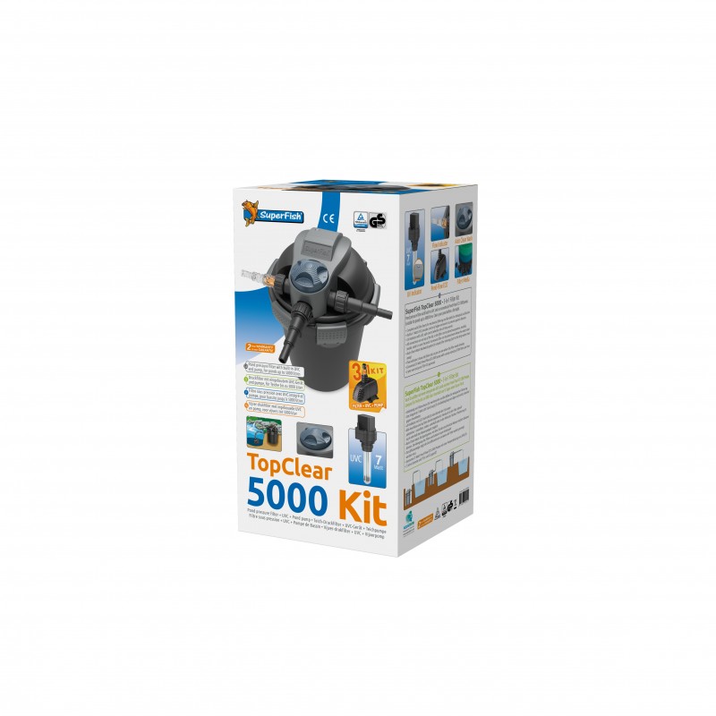 Les filtres TopClear 5000 et 10000 sont également disponibles en kit avec une pompe adaptée. Le kit TopClear 5000 est équipé de la pompe Pond-Flow ECO 2000 d'une capacité de 2.000 litres par heure de 25 watts. Le kit TopClear 10000 est équipé d'une pompe Pond-Flow ECO 3000 de 45 watts, d'une capacité de 2.900 litres par heure.|