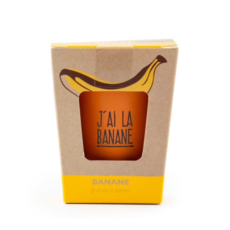 - Inscription sur le pot du message 'J'ai la super banane'.