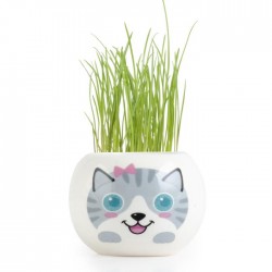 Le chat est le meilleur ami de l'homme, tant pis pour les amateurs de chien. Les enfants craqueront devant ces 2 modèles de tête à pousser à l'image de l'animal L'herbe fine poussée leur donneront un ' poil végétal ' d'une grande douceur. Vous avez dit ? Miaou ? Tout à fait !