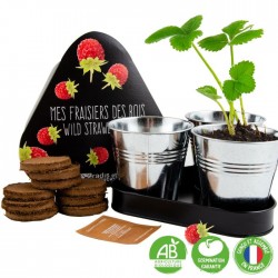 Les vrais gourmands connaissent la saveur irremplaçable des fraisiers des bois. Ils sont faciles à faire pousser, depuis le semis. L'élégance du jardinage à la maison passe par un trio de pots zinc de la gamme black présenté sur son plateau. Un cadeau qui sera très apprécié.