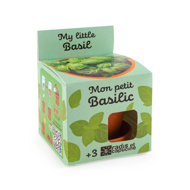 Fais pousser du basilic bio en intérieur ou en extérieur grâce à ce kit de jardinage. Tout est inclus: graines, terre, pot, coupelle, instructions