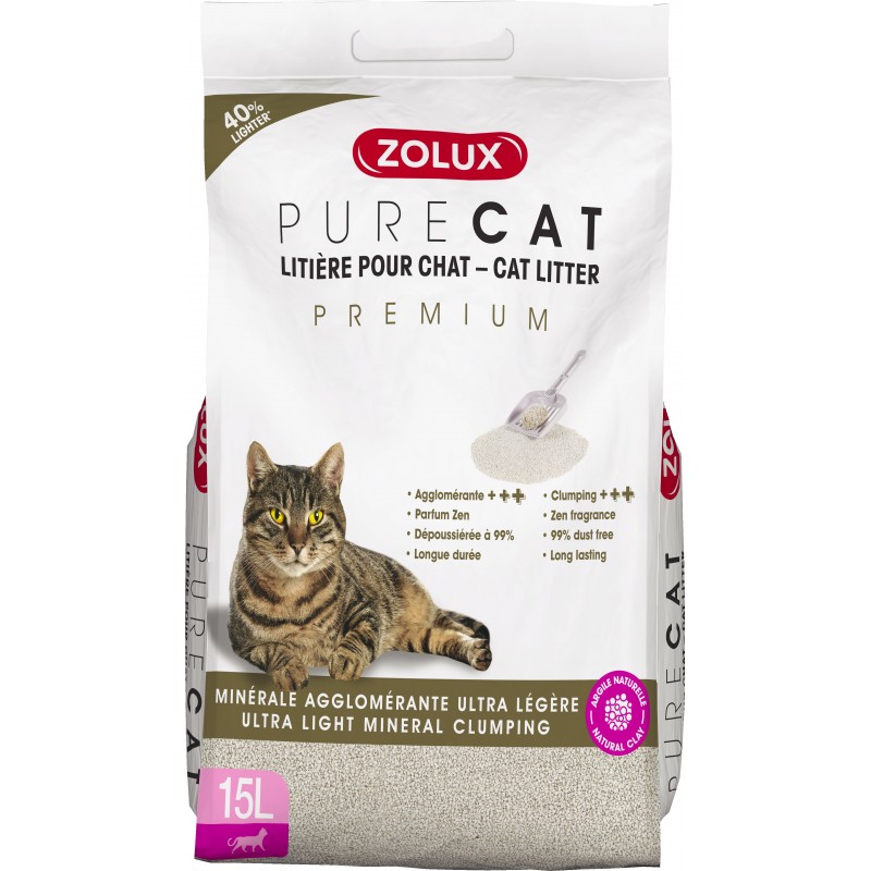 Litière minérale agglomérante ultra légère fabriquée à base d'argile naturelle.