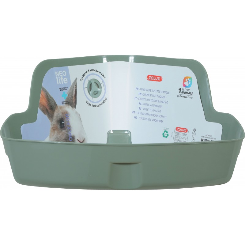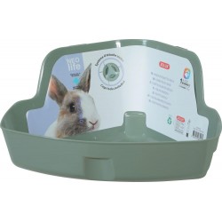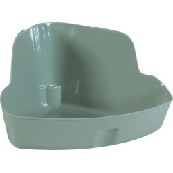 Toilette d'angle pour lapin de coloris vert. - Livré avec 2 crochets d'attache pour un maintien optimal aux grilles. - Approuvé par un vétérinaire. |