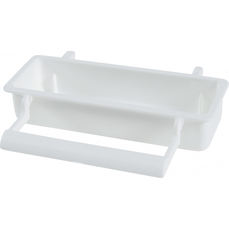 Mangeoire rectangulaire avec perchoir blanche. Pour tous types d'oiseaux. Dimensions : Lxpxh : 7x6x4.3 cm