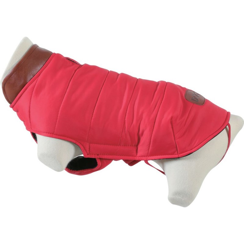 Doudoune London. Le look citadin tendance. Cette doudoune matelassée et imperméable est à la fois actuelle et très confortable. Ajustable au niveau du col et du poitrail grâce aux scratchs et aux élastiques. Passe-laisse et passe-pattes intégrés ton sur ton. Empiècement en cuir synthétique couleur cognac, cousu avec marquage DOG. Matières: dessus 100% nylon recyclé - intérieur et rembourrage: 100% polyester recyclé. Coloris: rouge. 7 tailles disponibles: 25cm, 30cm, 35cm, 40cm, 45cm, 50cm et 55cm. Conçu dans une démarche écoresponsable: nous avons porté une attention particulière au choix des tissus utlisés en privilégiant des matières recyclées. Les sachets plastiques qui recouvrent nos produits sont en plastique recyclé. Comment choisir la bonne taille de pull? Mesurez la longueur du dos de votre chien en partant de la base du cou jusqu'à la naissance de la queue et reportez vous aux indications ci dessous: Longueur du dos < 25cm = T25. Longueur du dos comprise entre 25 et 30cm = T30. Longueur du dos comprise entre 30 et 35cm = T35. Longueur du dos comprise entre 35 et 40cm = T40. Longueur du dos comprise entre 40 et 45cm = T45. Longueur du dos comprise entre 45 et 50cm = T50. Longueur du dos comprise entre 50 et 55cm = T55. A titre d'information complémentaire la taille 25 correspond généralement à des chiens de types Chihuahua, Pinsher Nain, Yorkshire. La taille 30 correspond à des chiens de types Bichon maltais, Caniche Toy, Pékinois, Schnauzer nain. La taille 35 correspond à des chiens de types Carlin, Cavalier King Charles, Jack Russel, Shih Tzu, Westie. La taille 40 correspond à des chiens de types Bouledogue français, Caniche, Cocker, Lhassa Apso. La Taille 45 correspond à des chiens de types bouledogue anglais, cocker américain ou encore Fox terrier. La Taille 50 correspond à des chiens de types cocker américain, bouledogue anglais, cocker anglais. La Taille 55 correspond à des chiens de types husky, boxer, dalmatien, labrador. Ces données sont indicatives. Chaque animal est unique, il est donc nécessaire de prendre en compte ses particularités de poids et/ou de taille.|