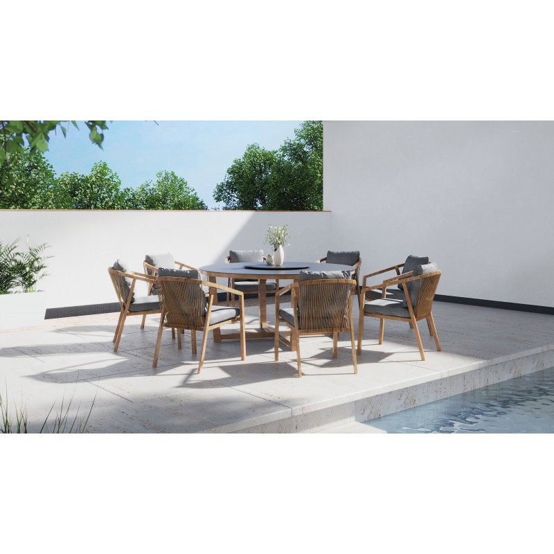 Table Ronde Lazy Susan Plateau Fairstone® 6Mm Kanto H76-Ø159 Aluminium/Pierre Anthracite/Naturel-CREADOR