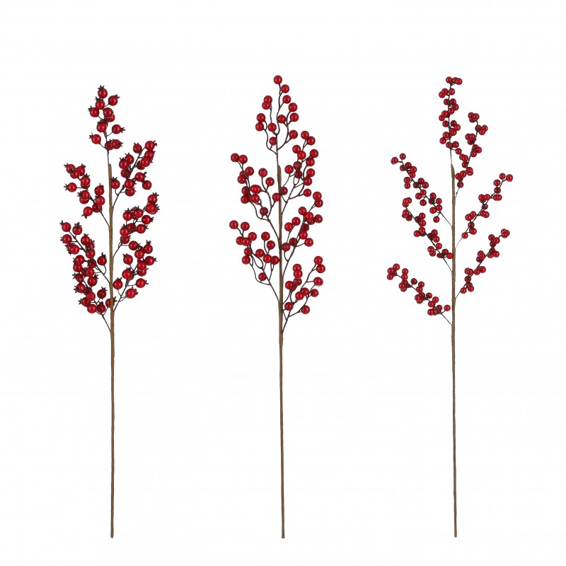 Branche de baies rouge 3 assorti - l80xw10xh4cm|