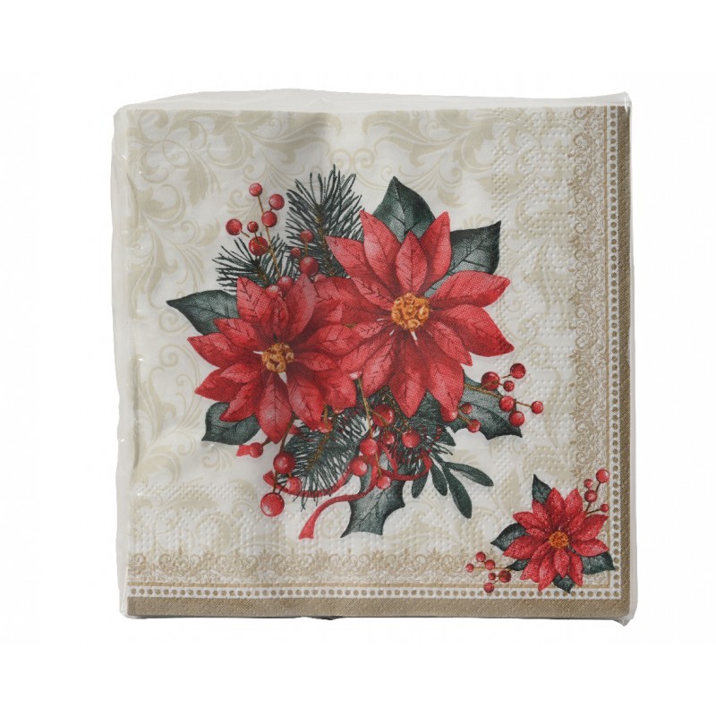 Serviette Poinsettia X20 Blanc En Papier 33X33 - Vendu À La Pièce-DECORIS