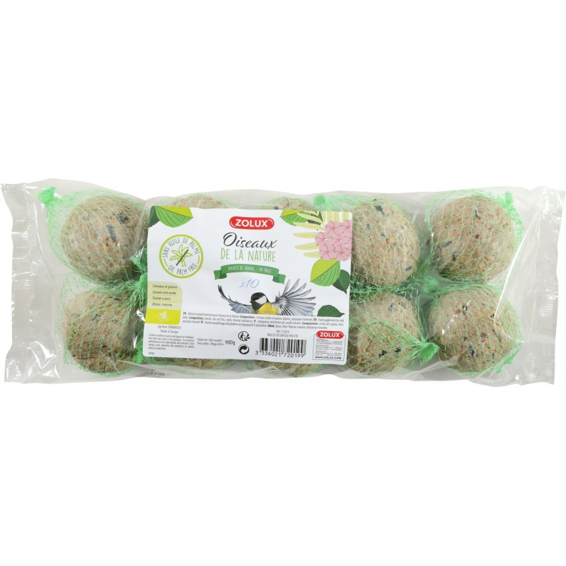 Constituées de céréales, huiles, graines et graisse, ces boules offrent aux oiseaux l'apport énergétique dont ils ont besoin, surtout en hiver.|