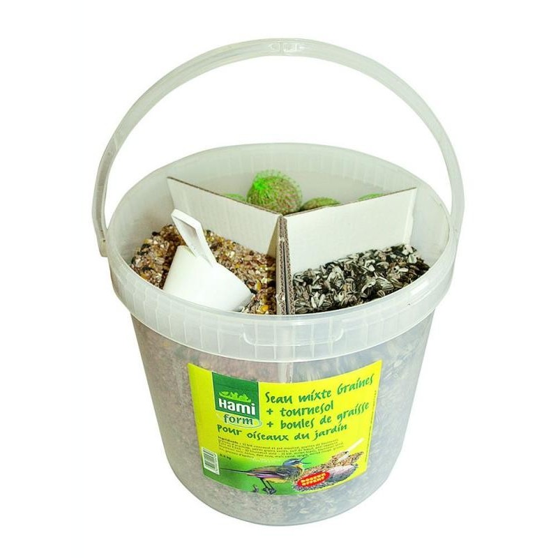 Riche et adapté, ce seau de boules de graisse, tournesol et mélange de graines Hami Form est mis au point par nos nutritionnistes. Il prend en compte les besoins énergétiques des oiseaux du jardin (mésanges, pinsons, bouvreuils, sitelles,... ) pendant la difficile période de l'hiver.