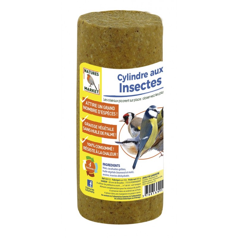 Cylindre de graisse VÉGÉTALE 850gr (huile de tournesol et colza) aux INSECTES.