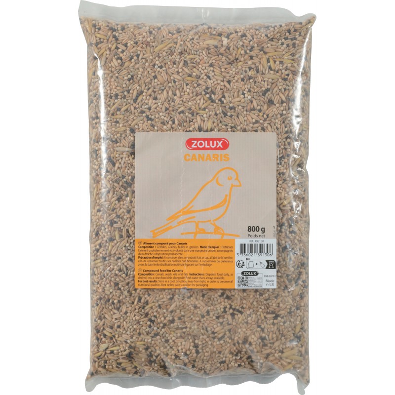 INGREDIENTS: Gruau, alpiste, colza, millet blanc, huile de colza.
