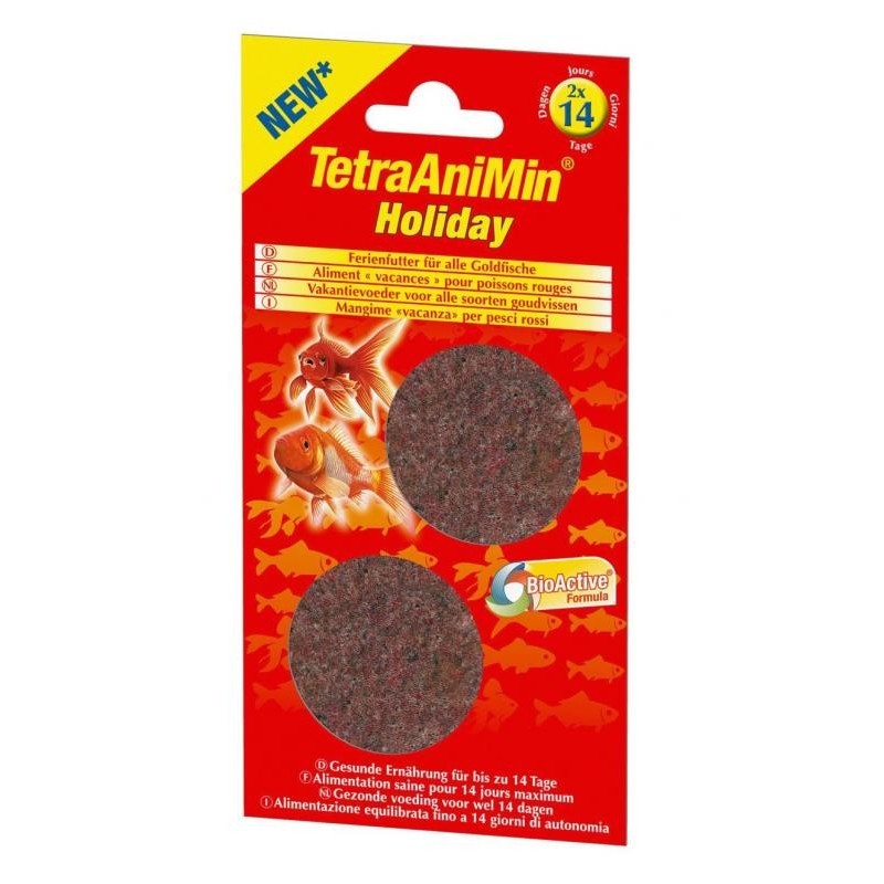 Découvrez un aliment complet en bloc gélifié spécialement conçu pour nourrir jusqu'à 14 jours tous vos poissons rouges et d'eau froide! Vous garderez donc une alimentation saine jusqu'à 14 jours d'absence! Ce produit est composé de Daphnies naturelles, vitamines et oligo-éléments essentiels, acides aminés et minéraux. Il ne pollue pas et ne trouble pas l'eau et ainsi ne modifie pas les paramètres de l'eau. C'est un aliment submersible qui coule au fond de l'aquarium. Il s'agit de 2 blocs gélifiés de 12g pour une meilleure conservation des composants. Facile à doser.|
