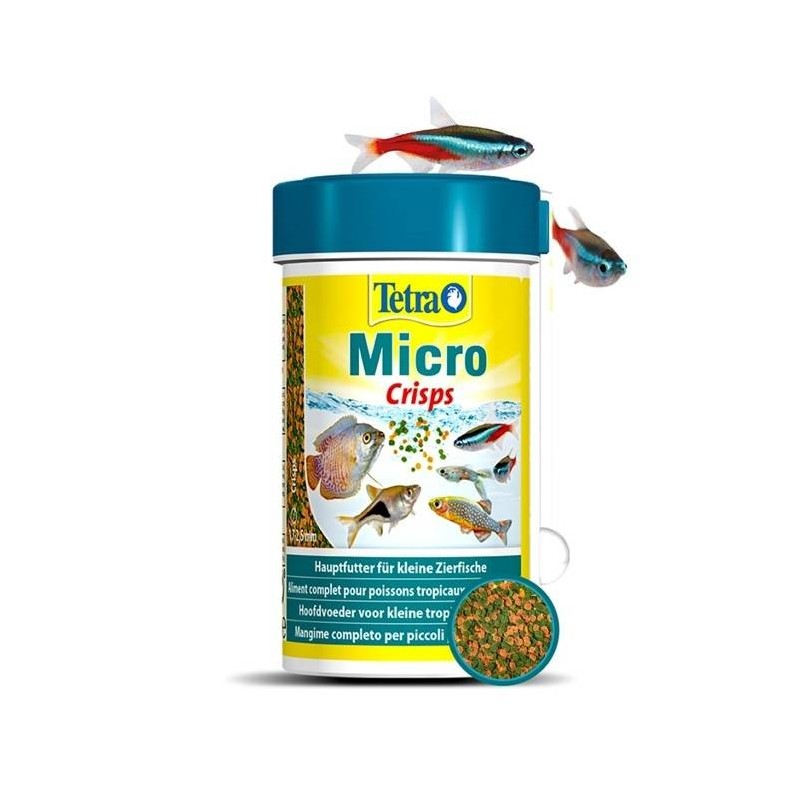 Mélanges de haute qualité spécialement développés à partir d’ingrédients pour herbivores et omnivores. Aliments adaptés aux différents besoins spécifiques des poissons d’eau douce de petite taille (>1cm). Les petites particules d'alimentation ramollissent rapidement ce qui permet aux petits poissons une consommation d'alimentation rapide et facile. Micro Crisps: Elles flottent (assez longtemps) puis coulent lentement pour répondre aux attentes des poissons de surface (Bororas brigittae, nez rouge bir-man, gourami nain, guppy endler) et de pleine eau (néons, rasbora, nez rouge, microrabora galaxie, danio rerio,tetra amapa).|