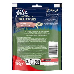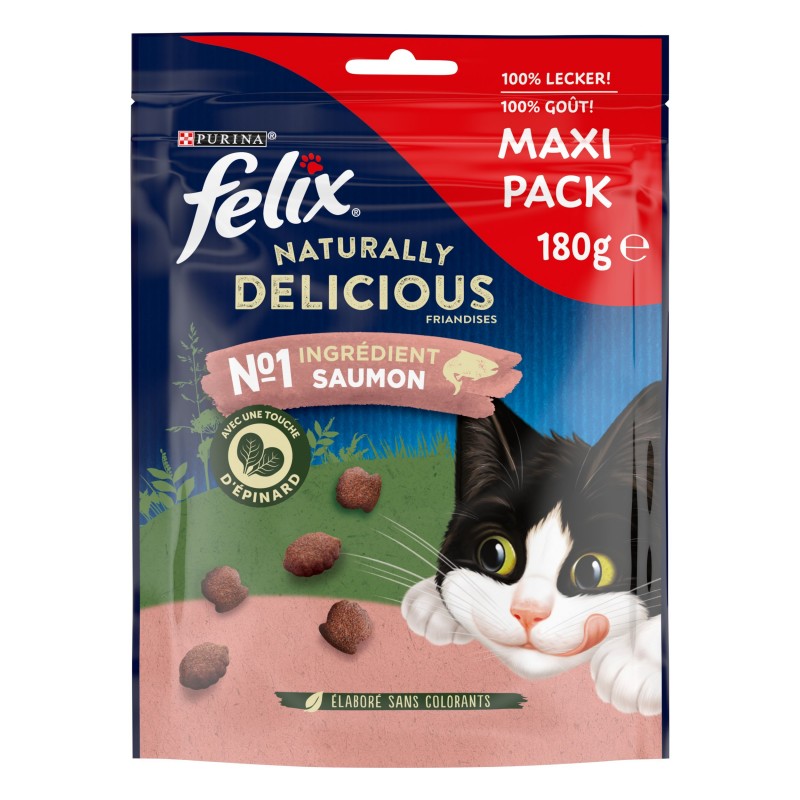 Les friandises FELIX® Naturally Delicious sont élaborées avec des ingrédients de haute qualité et sans aucun colorant. Ces friandises sont une belle occasion de partager un agréable moment avec votre animal avec du saumon de qualité comme premier ingrédient et un ingrédient naturel spécifique, l'épinard ! Observez l'enthousiasme et les yeux pétillants de votre chat pendant qu'il déguste ces savoureuses friandises, naturellement !