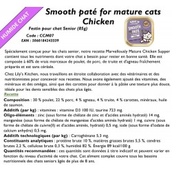 Notre recette de pâtée pour chats mature est l’aliment idéal pour contenter le délicat palais du doyen de la maison, en lui apportant tout ce dont il a besoin pour rester actif et en bonne santé. Sa texture moelleuse et fondante se déguste facilement, et nos vieux compagnons ne peuvent résister à sa savoureuse formule contenant des viandes et des poissons de qualité. Sans sucres ajoutés (une qualité rare dans les aliments pour chats), ces recettes sans céréales couvrent tous les besoins nutritionnels de votre chat, pour une formule à la fois délicieuse et complète.