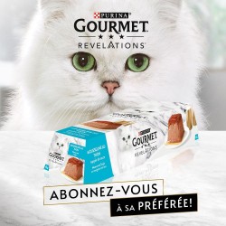 GOURMET REVELATIONS™ Une collection de mets succulents, dans une forme parfaite pour un moment d'exception pour vous et votre chat. Chaque mousseline, délicate et raffinée, est élaborée avec des ingrédients de haute qualité, et nappée de sauce pour offrir à votre chat une expérience gustative unique. GOURMET REVELATIONS™: Un mets sublimé.