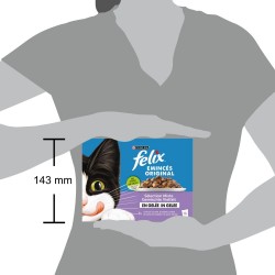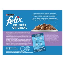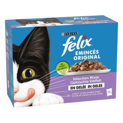 Les chats futés savent ce qu'ils veulent, en particulier à l’heure des repas ! C'est pourquoi les recettes irrésistibles de FELIX® Emincés sont préparées avec des ingrédients de qualité et contiennent de tendres émincés enrobés d’une délicieuse gelée. Ces repas FELIX® Emincés sont une source d'acides gras essentiels Oméga 6 avec le juste équilibre de vitamines pour aider votre chat à rester en pleine forme et à être prêt pour encore plus de malice ! Ils sont préparés avec des ingrédients de qualité pour satisfaire 100% des besoins quotidiens de votre chat, selon les rations journalières recommandées sur l'emballage. Et ce n'est pas tout ! Les repas FELIX® sont disponibles dans une large gamme de recettes en gelée pour satisfaire les envies de variété de votre chat. FELIX®, tellement irrésistible !