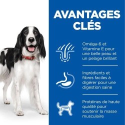 Offrez à votre chien adulte un délicieux repas avec tous les éléments nutritifs dont il a besoin. La pâtée pour chien HILL'S SCIENCE PLAN Adult au poulet est une délicieuse formule humide parfaitement équilibrée avec pour la santé et le bien-être de votre chien adulte. Formulé avec des ingrédients faciles à digérer, cet aliment constitue une excellente source de protéines de haute qualité. Ses puissants antioxydants sont de plus de parfaits alliés santé pour votre animal.