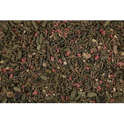 Formule: Granulés 55%, granulés luzerne 21%, extrudés, flocons de blé, flocons d’avoine, caroube.