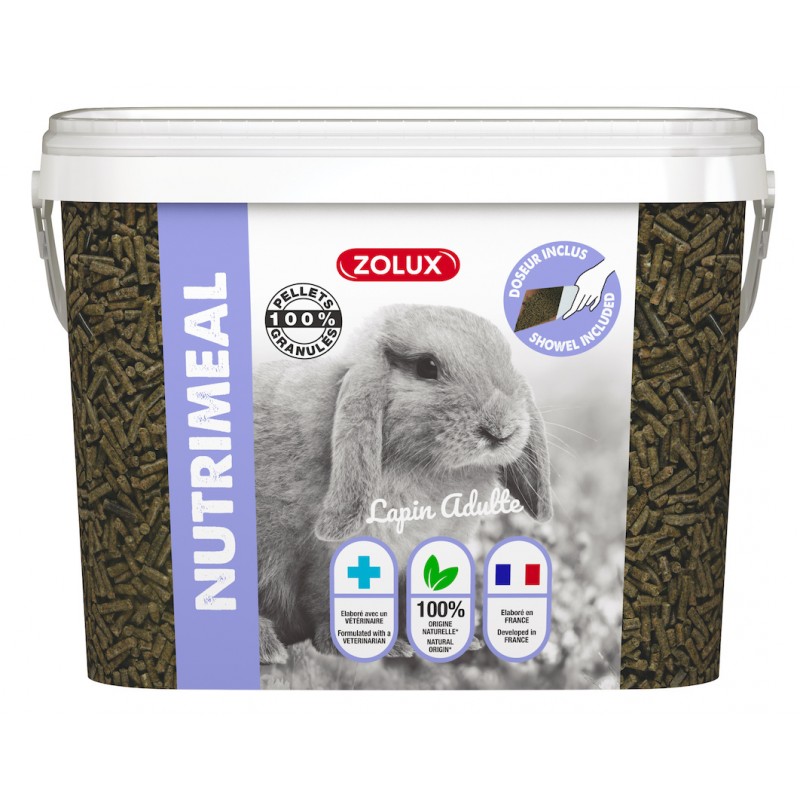 Granulés pour lapin nain adulte (6 mois et plus). Elaborée en France avec un vétérinaire. Conditionnée dans notre usine de fabrication à Péronne (80, Somme).