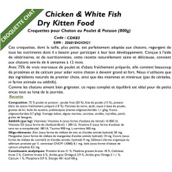 Créée avec l'aide de vétérinaires, de nutritionnistes et de spécialistes du goût, cette recette est naturellement savoureuse et saura ravir votre nouvelle boule de poils (convient aux chatons âgés de moins de 12 mois). Et tout cela dans une croquette plus petite pour les petites bouches. Avec 74% de viande provenant de poulet et d'abats fraîchement préparés, il contient beaucoup de protéines et de calcium pour aider votre chaton à grandir et à devenir fort. Il s'agit d'une recette complète et équilibrée sur le plan nutritionnel, sans céréales, sans farine de viande ni additif, ce qui la rend naturellement saine pour votre chaton.