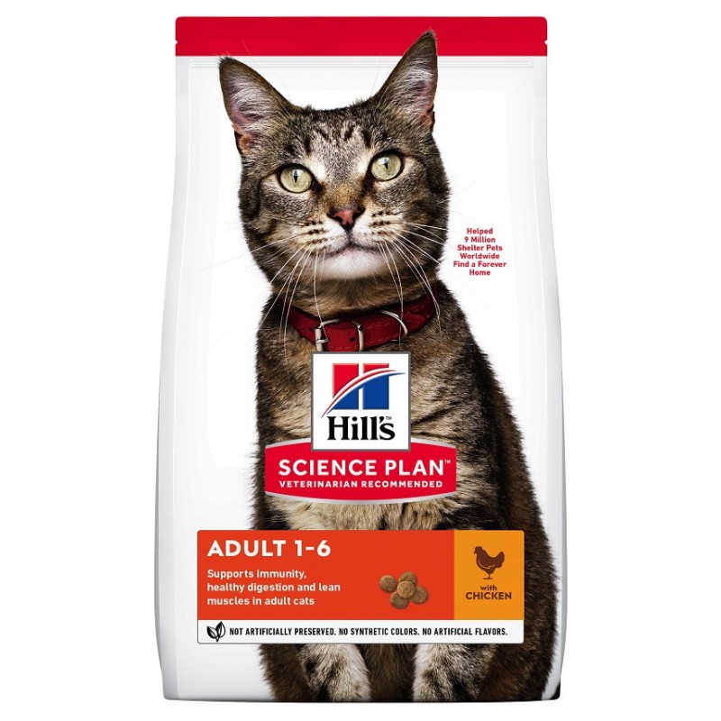 Votre chat adulte a besoin d’une alimentation adaptée, capable de soutenir sa santé digestive, de renforcer son système immunitaire et de maintenir son beau pelage et sa masse musculaire. Elaborées à partir d’ingrédients de haute qualité et faciles à digérer, les croquettes Hill’s Science Plan Adult au poulet sont spécialement formulées pour fournir aux chats adultes âgés de 1 à 6 ans toute l’énergie dont ils ont besoin. Hill’s Science Plan Feline Adult apporte à votre chat de la vitamine E et des acides gras oméga-3 et oméga-6 qui nourrissent sa peau, ainsi que des protéines de haute qualité qui préservent sa masse musculaire. Grâce à sa teneur équilibrée en acides aminés et en minéraux, cet aliment soutient la santé cardiaque, les fonctions rénales et urinaires de votre chat adulte. Pour varier les plaisirs de votre chat, vous pouvez lui donner des sachets repas Hill's Science Plan Feline adult, en complément ou en alternance de ses croquettes.