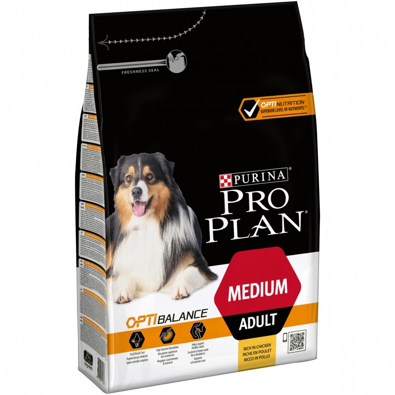 Formulée avec des morceaux de poulet, PURINA PRO PLAN Medium Adult avec OPTIBALANCE? permet à votre chien de profiter d?une absorption optimale des nutriments à chaque repas afin qu?il profite de chaque instant de la vie.