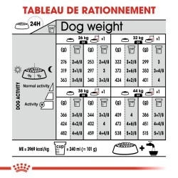 CONSTITUANTS ANALYTIQUES: Protéine: 25,0 % - Teneur en matières grasses: 17,0 % - Cendres brutes: 5,9 % - Cellulose brute: 1,6 % - Au kg: Acides gras oméga 6: 36,0 g dont acide gamma-linolénique: 0,3 g - Acides gras oméga 3: 11,4 g dont EPA/DHA: 4,0 g.