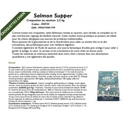 Comme toutes nos croquettes, cette délicieuse recette au saumon, sans céréale, et complète sur le plan nutritionnel, regorge de bienfaits naturels. Cette recette mono-protéique au poisson est idéale pour les chiens allergiques aux sources de protéines traditionnelles.