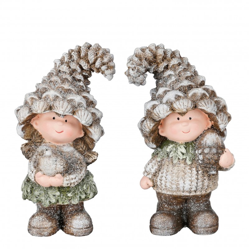 Garcon Pomme De Pin Gris En Polyrésine H20.5-vendu à La Pièce-MICA DECORATIONS