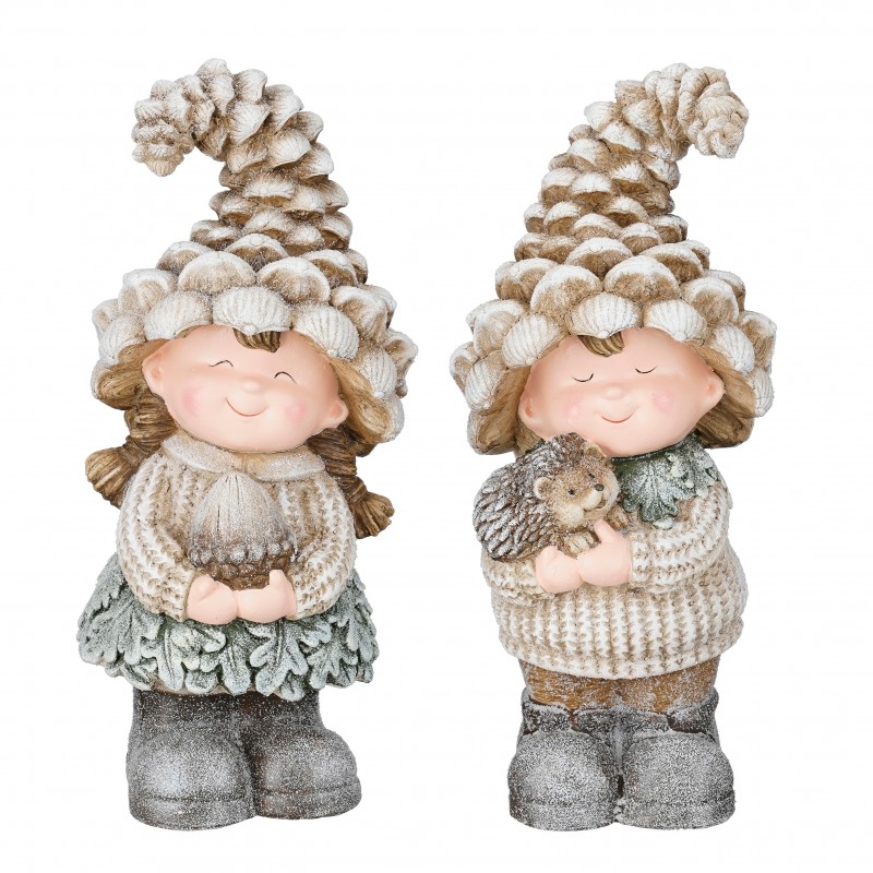 Garcon Pomme De Pin Gris En Polyrésine H43.5-vendu à La Pièce-MICA DECORATIONS