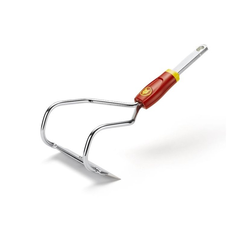 Ratissoire à double branche de la gamme d'outils interchangeables Multi-Star Outils WOLF. En acier galvanisé et verni. cet outil est idéal pour sarcler et désherber sans effort. Sa lame de 15 cm. robuste. ses deux branches permettront de nettoyer votre potager facilement en écartant les feuilles de vos plants et ainsi vous éviterez de les abîmer. S'adapte à l'homme (position de travail) et à tous les manches. Manches conseillés : ZM150-ZMA150