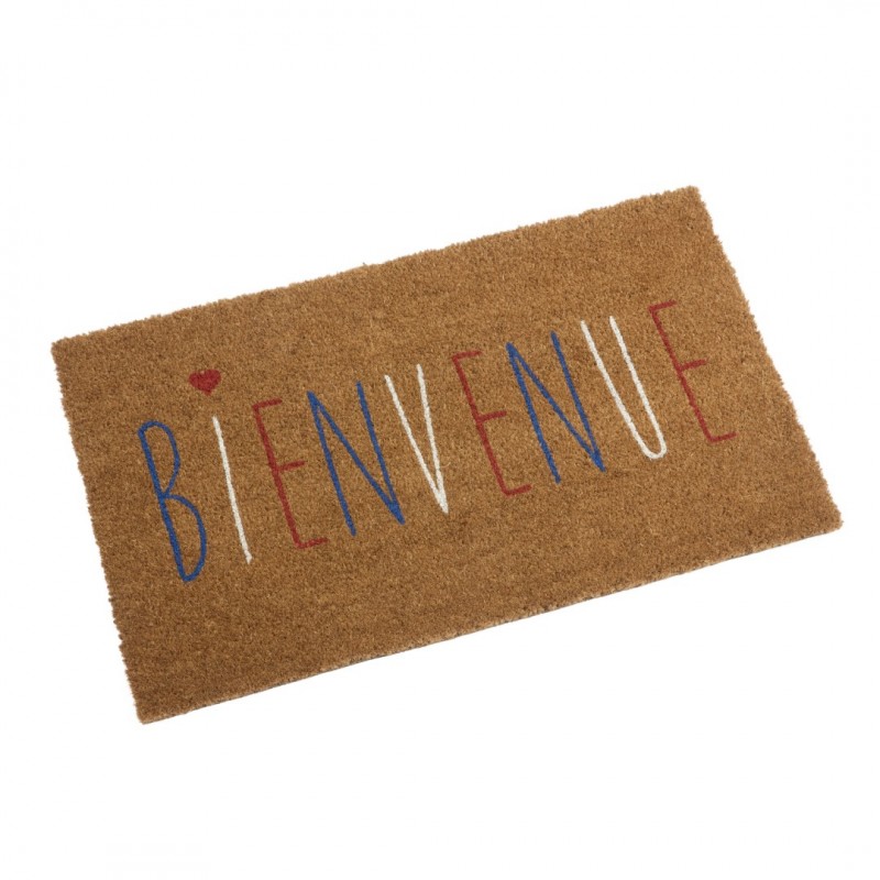 Décoir paillasson coco Bienvenue! La surface en fibre de coco naturelle durable élimine la boue et la saleté des chaussures. Support en PVC antidérapant Facile à nettoyer - il suffit de le brosser lorsqu'il est sec Convient à un usage intérieur et extérieur 75x45cm
