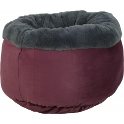 Elle est fabriquée à partir d'un velours de couleur aubergine, doux et résistant ainsi qu'une fourrure gris anthracite à l'intérieur pour le confort de l'animal.