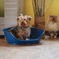 Siesta Deluxe est un couchage pratique et polyvalente pour chiens et chats. Fabriqué entièrement en plastique, solide et robuste, il possède une forme arrondie agréable pour accueillir vos animaux. Conçu pour être extrêmement confortable, avec des bords hauts et une face avant abaissée pour faciliter l'accès, il a un repose-tête utile et un fond perforé assurant le passage correct de l'air. Les pieds en plastique avec antidérapant maintiennent le panier très stable. Les corbeille Siesta Deluxe pour chiens et chats sont disponibles en différentes couleurs et tailles. Les modèles Siesta Deluxe 2 et Siesta Deluxe 4 conviennent aux petits chiens et aux chats. Pour plus de confort, vous pouvez compléter la corbeille avec un coussin confortable de la gamme relax de Ferplast.