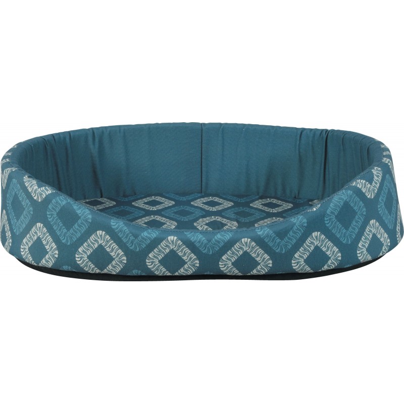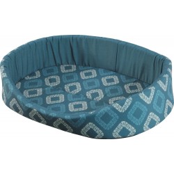 Corbeille issu de la nouvelle gamme de confort ONE SIRIUS" pour chiens. Qualité : tissu polycoton 170g. Garnissage : 100% polyuréthane. Coloris : motif graphique dans des nuances de bleu et de crème |